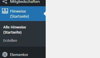 Sind keine Hinweise eingepflegt, verschwindet auch automatisch der Balken auf der Startseite.